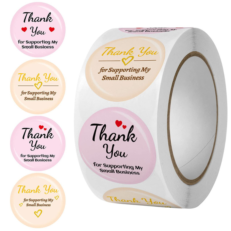 Questi adesivi "Grazie" sono accompagnati da "Grazie per aver sostenuto la mia piccola impresa".Adorabili adesivi per sigillare le borse della merce., scatole di imballaggio, buste e ricevute.